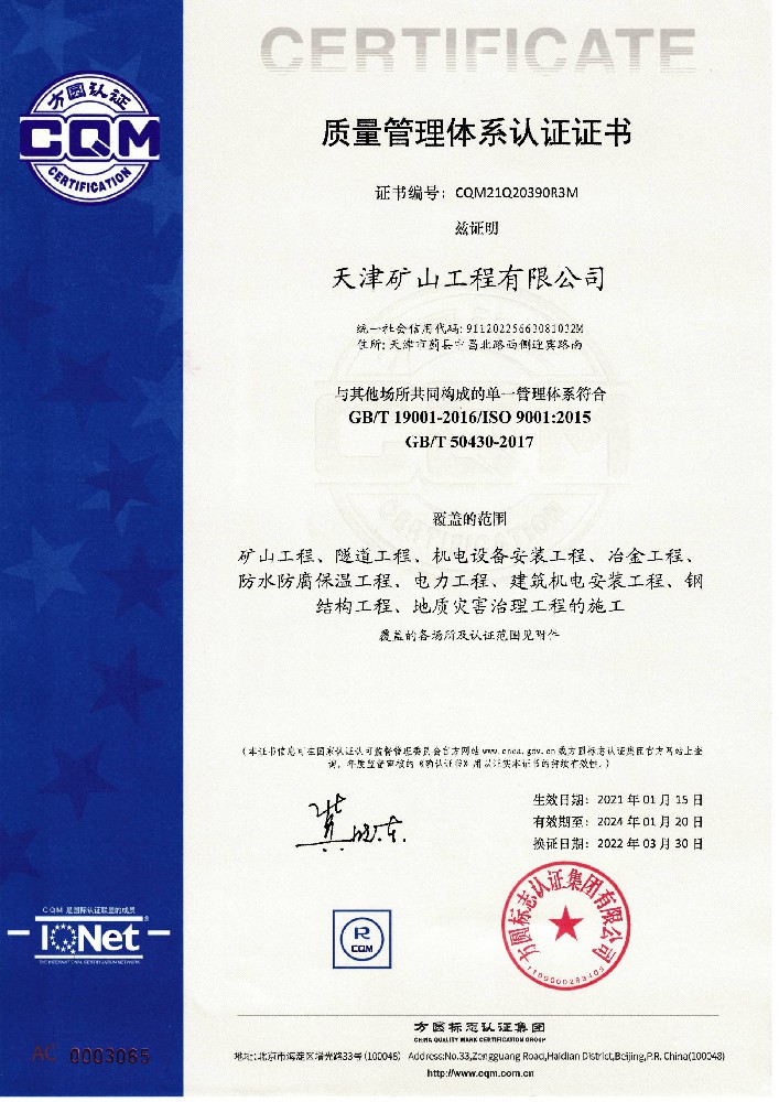 質(zhì)量管理體系認(rèn)證證書