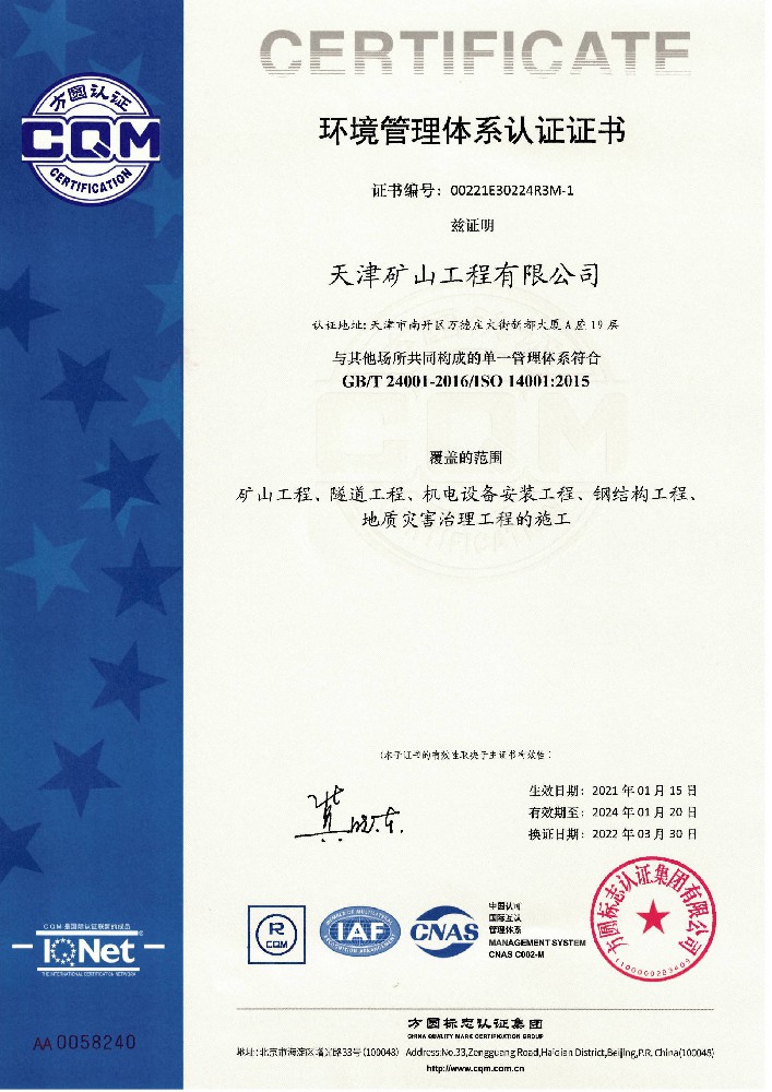 環(huán)境管理體系認(rèn)證證書